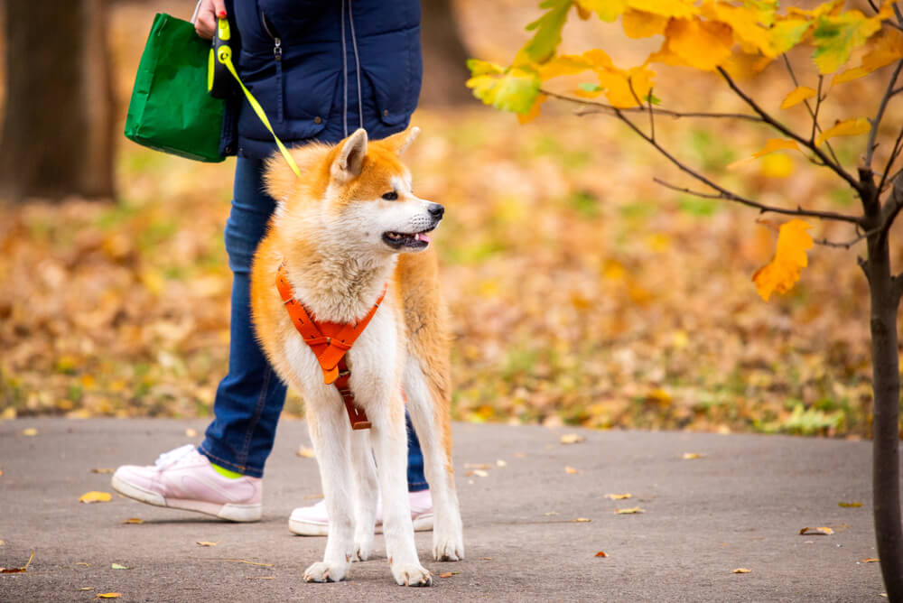 驚いたペットが逃げ出してしまわないよう、決してリードを離さないようにします。