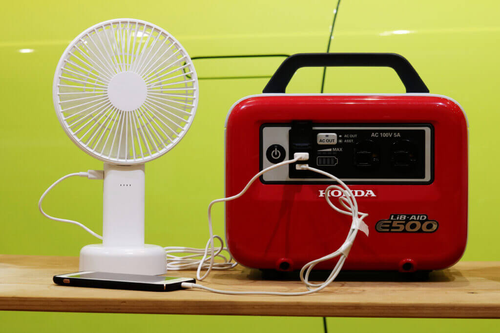 ソーラーパネルで蓄電した電力で、ポータブル電源を動かし、電力を供給できるものです。